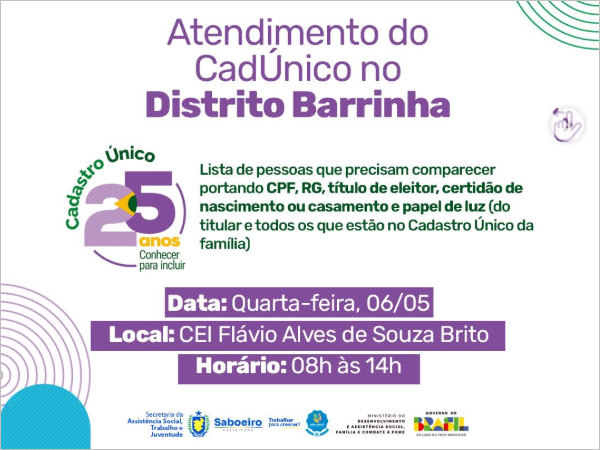 ATUALIZAÇÃO DO CADÚNICO CHEGA AO DISTRITO BARRINHA NESTA QUARTA-FEIRA